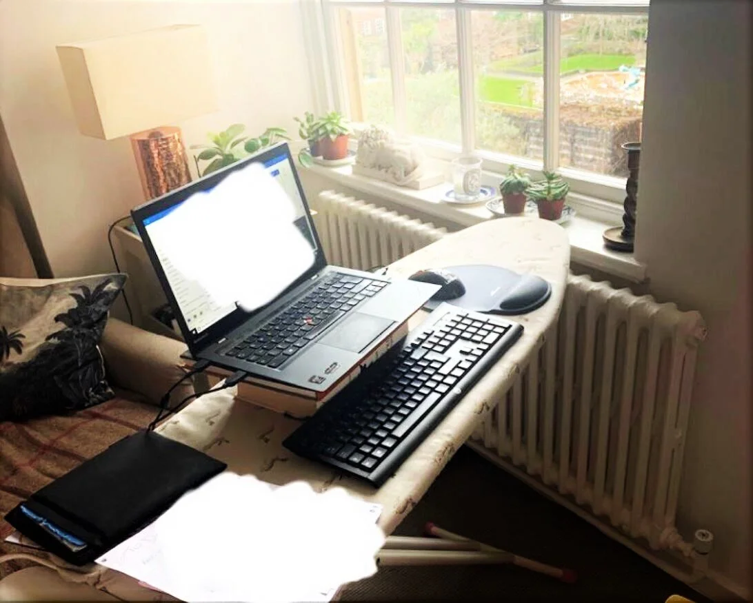 When people (who work in an office) daydream about working from home, we know they are envisioning sitting on their couch or in their bed, in comfy pajamas, with their laptop open, birds chirping in the background, filled with peace and serenity and.... *CRASH* Yep, you just dropped your full coffee mug on your laptop because your child popped into your bedroom as silent as a cat, stood beside you, and yelled at the top of their lungs, “MOM! WHERE’S MY TABLET!?!”